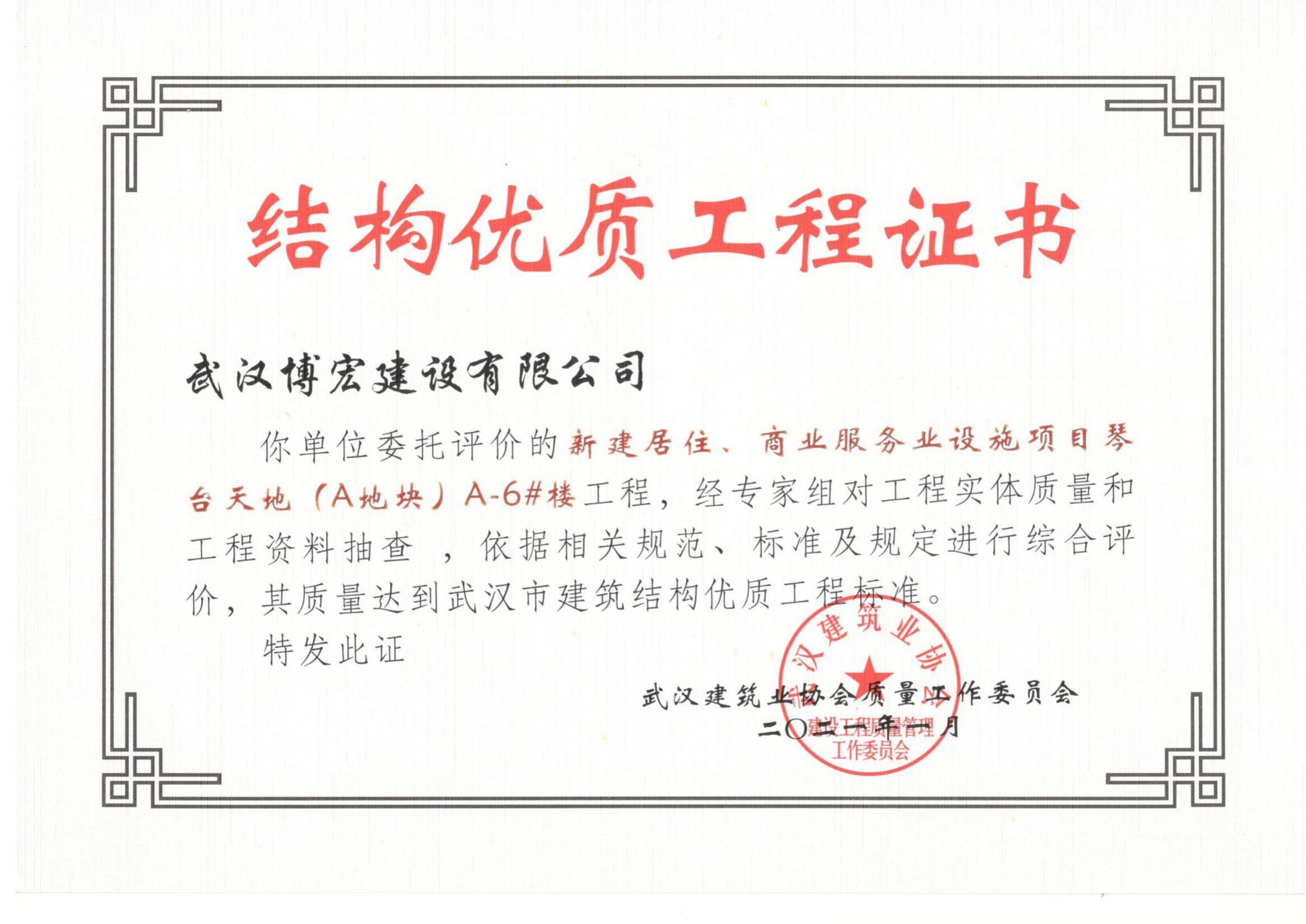 2021年武漢市結(jié)構(gòu)優(yōu)質(zhì)工程(琴臺(tái)天地(A地塊)6棟