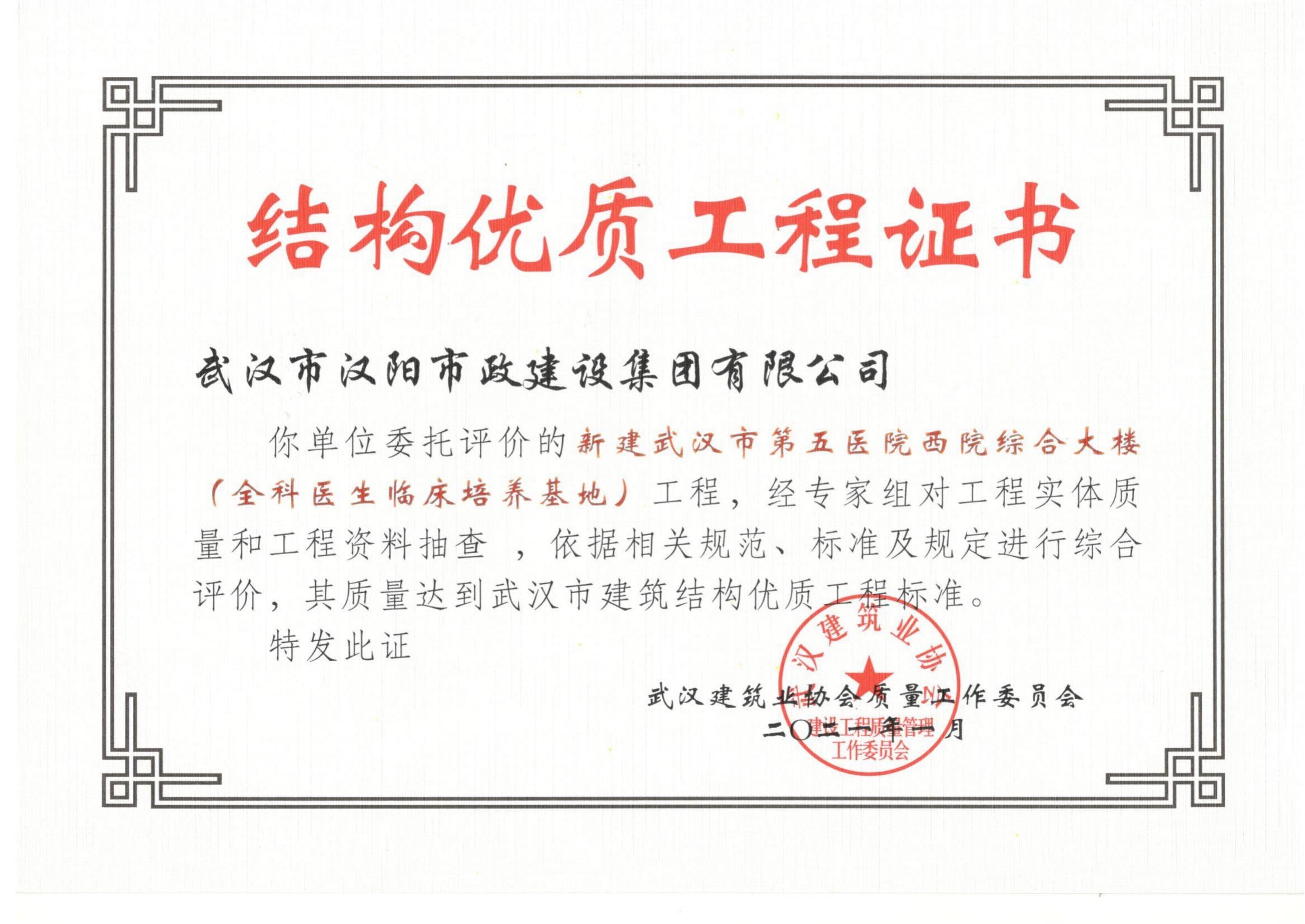 2021年武漢市結(jié)構(gòu)優(yōu)質(zhì)工程(新建武漢市第五醫(yī)院西院綜合大樓)