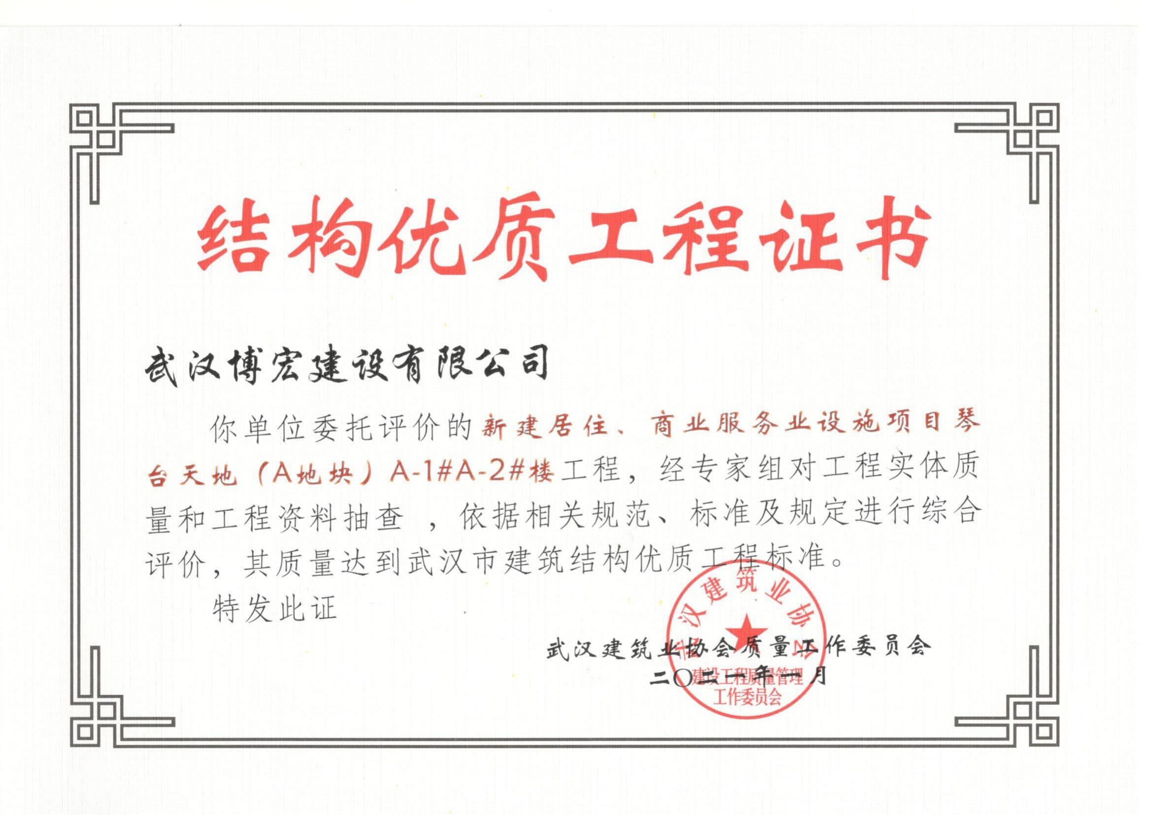 2021年武漢市結(jié)構(gòu)優(yōu)質(zhì)工程(琴臺(tái)天地(A地塊)1、2棟