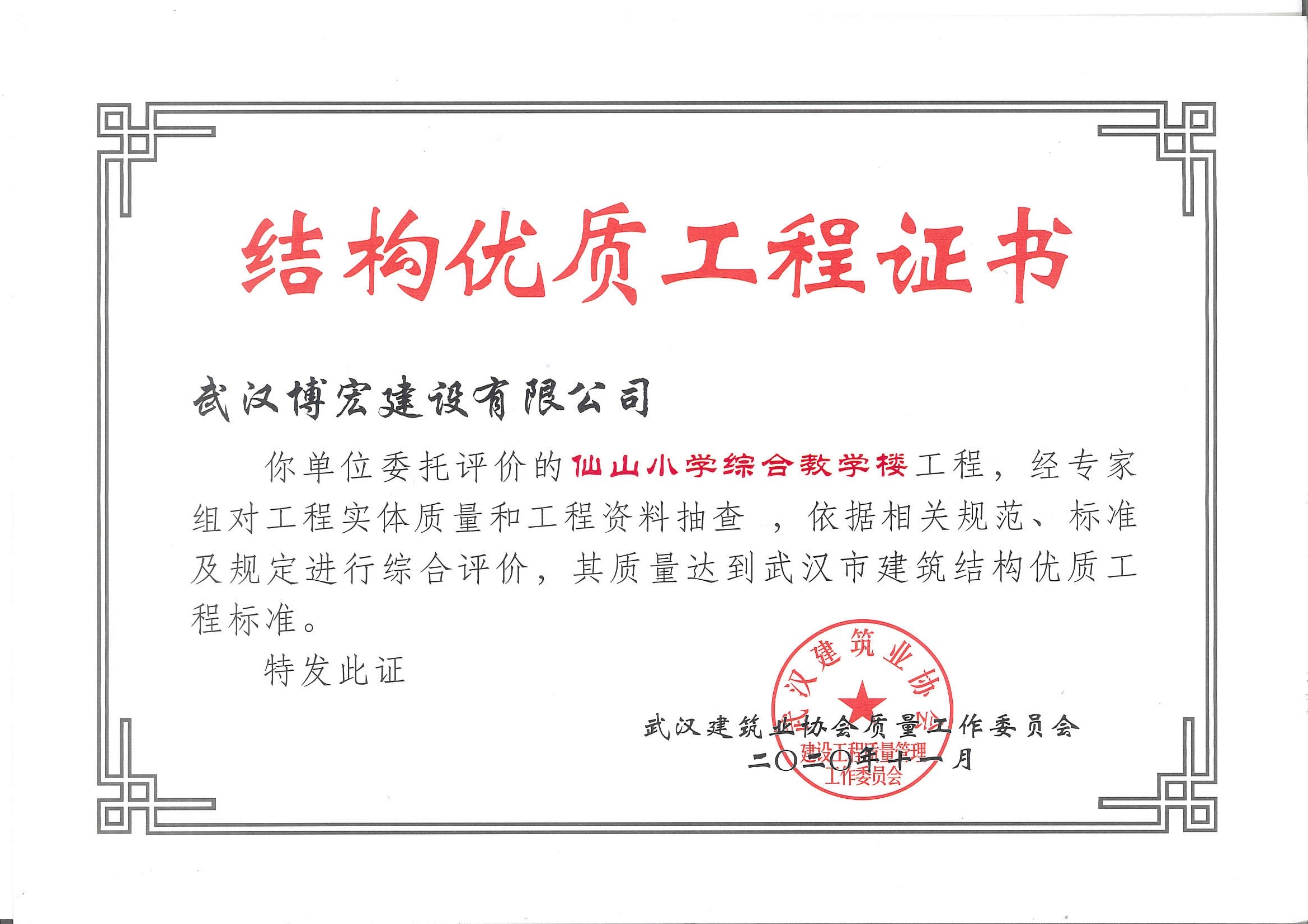 武漢市建筑結(jié)構(gòu)優(yōu)質(zhì)工程(仙山小學(xué)綜合樓)