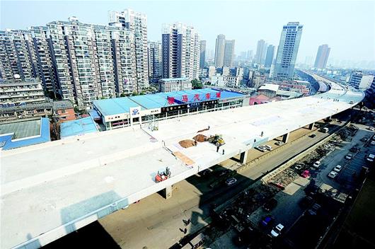 昨日,記者來到雄楚大街改造工程指揮部發(fā)現(xiàn),這里異常繁忙,工人們都在忙著搭腳手架、趕進(jìn)度。記者看到,雄楚大街高架梅家山立交至武漢理工大學(xué)段橋面已全線貫通,整條高架已成形。對(duì)接二環(huán)線珞獅南路高架的接線,正在緊張施工中。施工方介紹,昨日貫通的一段將于今年五一通車。據(jù)了解,二環(huán)線漢陽方面,只剩下龍陽大道墨水湖北路至知音橋段仍在施工中,其他路段均已通車。