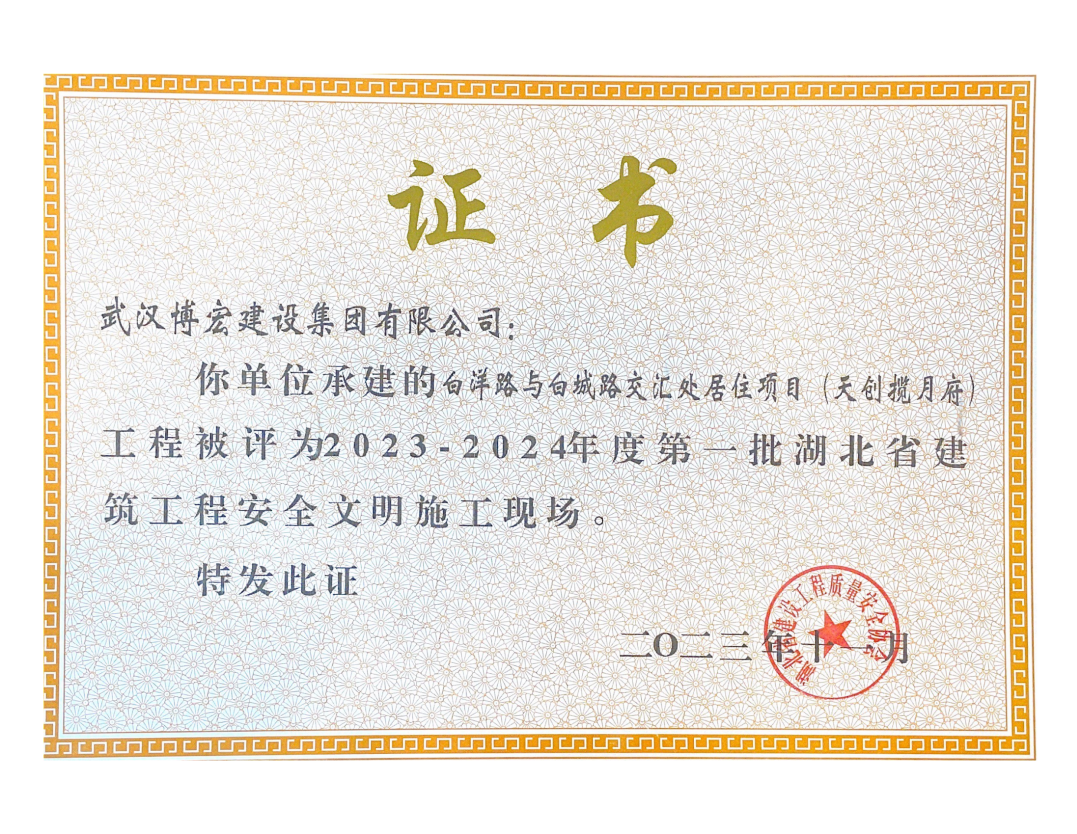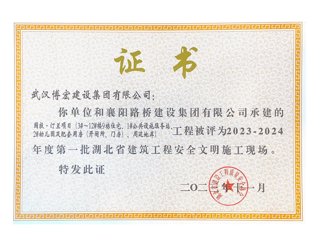 近日,湖北省建設(shè)工程質(zhì)量安全協(xié)會公布了2023-2024年度第一批湖北省建筑工程安全文明施工現(xiàn)場名單,由博宏建設(shè)集團(tuán)承建的隨州市中心看守所辦公區(qū)、監(jiān)區(qū)及配電房;黃金口產(chǎn)業(yè)園商業(yè)設(shè)施、居住、公園綠地建設(shè)項(xiàng)目;新建工業(yè)項(xiàng)目(漢陽市政科研中心)(EPC)等8項(xiàng)工程獲評湖北省建筑工程安全文明施工現(xiàn)場。